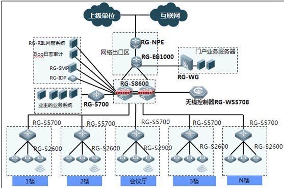先進高效的無線網絡:采用802.11n無線AP對辦公大樓辦公區域進行無線覆蓋,用戶可以在大樓內使用無線網絡進行高帶寬、低延時的網絡應用,有線無線設備統一管理,有線無線用戶統一認證。